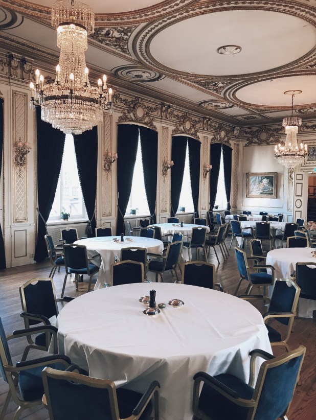 Every room in this hotel is to die for. The breakfast hall is basically a ball room complete with high ceilings, gold detailing and, the most gorgeous chandeliers that you will ever see! The bedroom is equally as gorgeous. The dark wallpaper helps combat the fact that THE SUN NEVER SETS! Lucky the beds are so comfy that it doesn’t really matter (the jet lag may have helped as well).